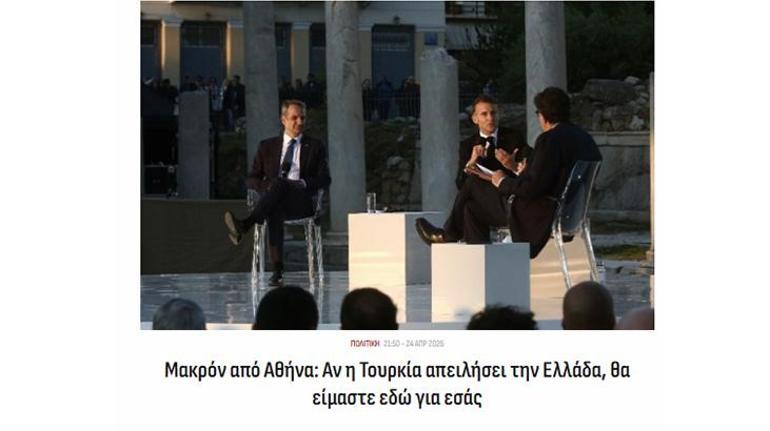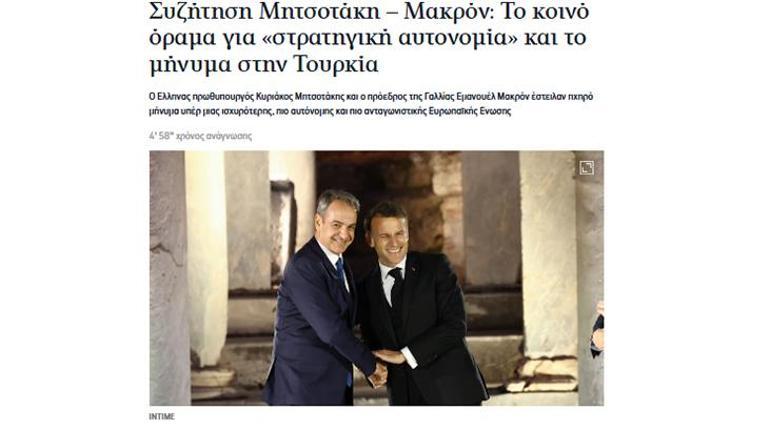 Kathimerini ise “Macron’dan Türkiye’ye mesaj” başlıklı haberinde “Fransa, Ankara’ya yanımızda olacağını garanti etti. Macron, Türkiye’ye bir mesaj gönderdi. Yunanistan-Fransa ittifakı Türkiye’ye karşı” ifadesinde bulundu.