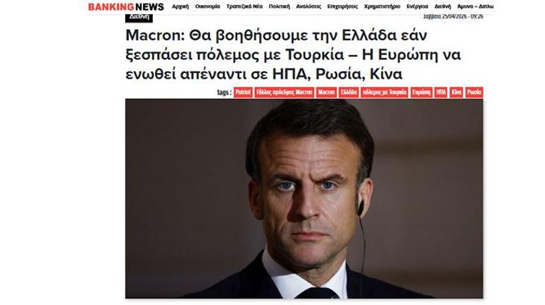 Banking News ise Macron’un söylemlerini “Türkiye ile savaş çıkarsa Yunanistan’a yardım edeceğiz” başlığıyla okurlarına aktardı. Haberde “Fransa,Ege’yePatriothava savunma sistemi konuşlandırdıve Türkiye’ye karşı her koşulda yanımızdalar” denildi.